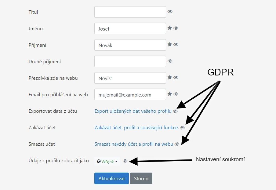 V možnostech profilu máte k dispozici všechna nastavení ochrany soukromí a bezpečnosti, tedy kdo může vidět váš profil nebo návštěvy ve vašem profilu, dále možnost stažení osobních dat, pozastavení nebo smazání účtu a další. Díky tomu budete moci zablokovat vybraným uživatelům přístup ke svému profilu, ale také komunikaci s vámi, včetně soukromých zpráv a žádostí o přátelství. Dbáme na soukromí uživatelů, důvěrnost a svobodu komunikace.