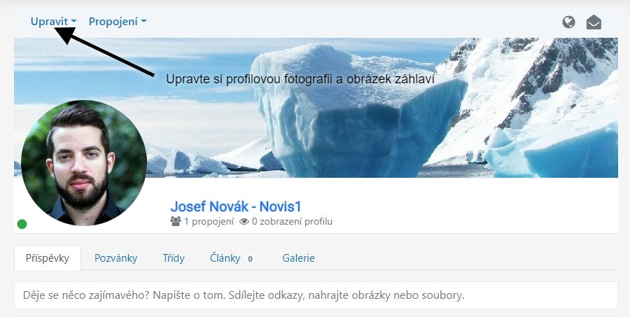 Na Školství.cz se budete cítit jako doma. Nahrajte svůj profilový obrázek a titulní obrázek tak, jak jste zvyklí například na Facebooku. Profilový obrázek doporučujeme ve tvaru čtverce. V profilu si můžete také doplnit další osobní informace. Pokud se registrujete přihlášením přes Facebook, Google nebo Linkedin, osobní profil bude automaticky doplňen o váš titulní obrázek a profilovou fotografii z vybrané sociální sítě. Obrázek i fotku můžete změnit.